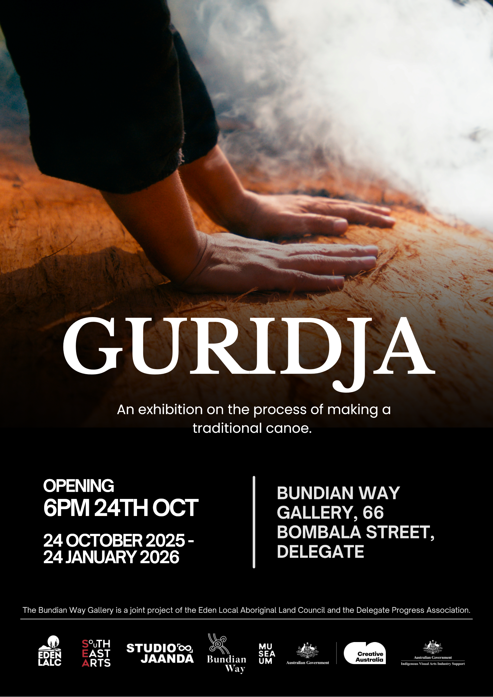Bundian GalleryThe Bundian Gallery is a joint Venture between the Delegate Progress Association and the Eden Aboriginal Land Council. The gallery features Aboriginal Art from local and regional artists. There are four exhibitions a year. Current Exhibition is Guridja an exhibition on the process of making a traditional canoe.